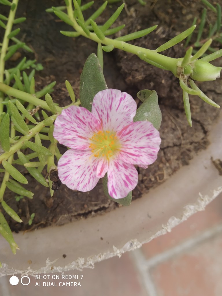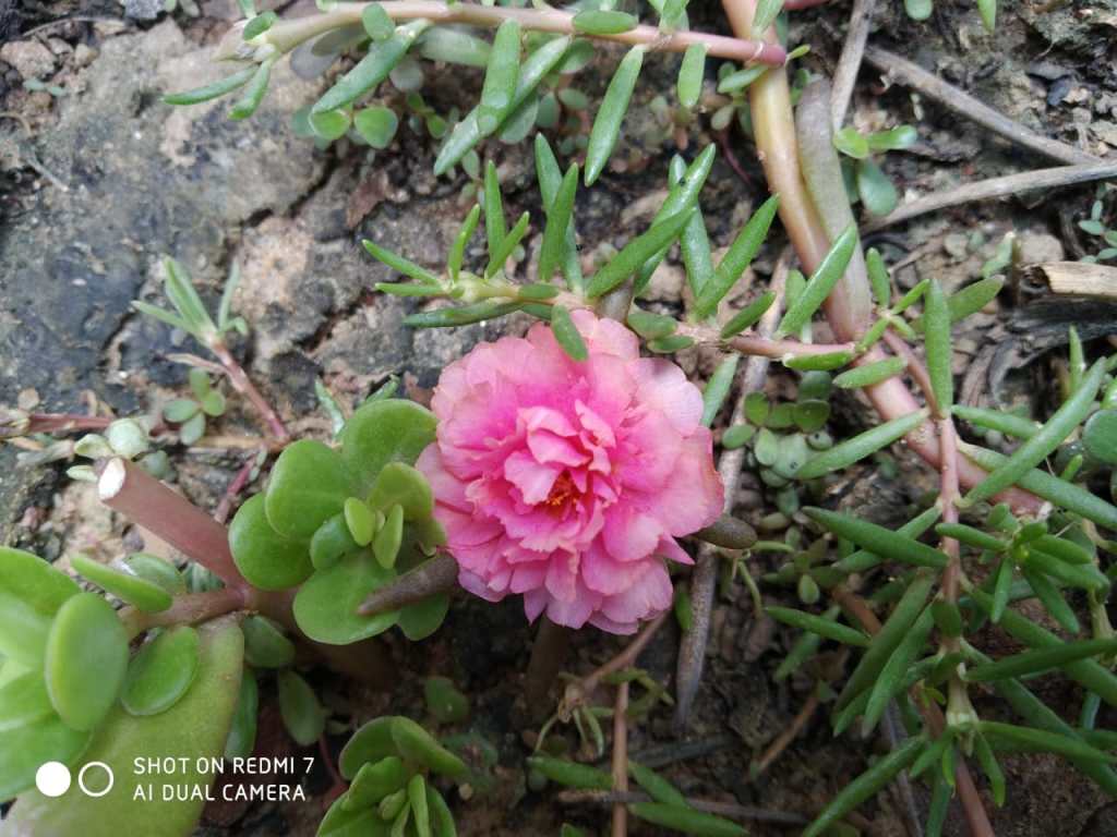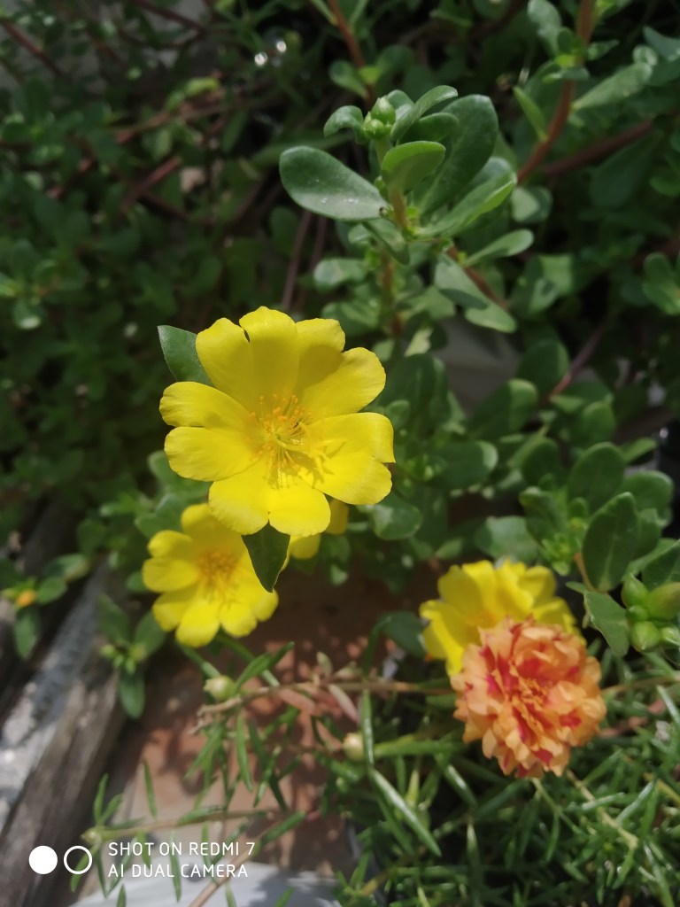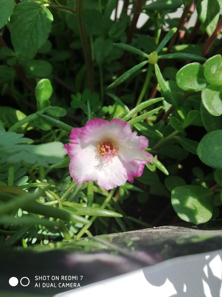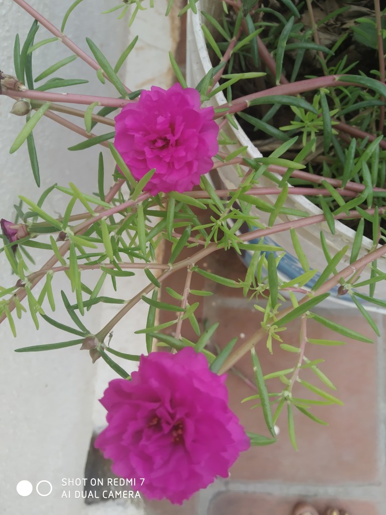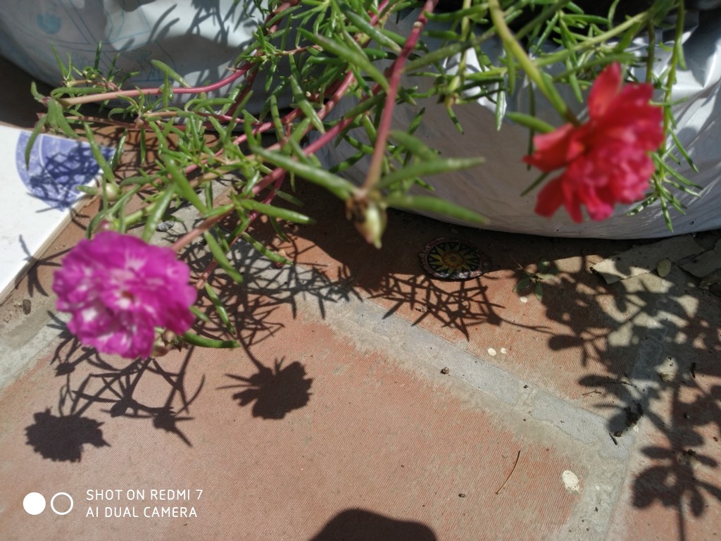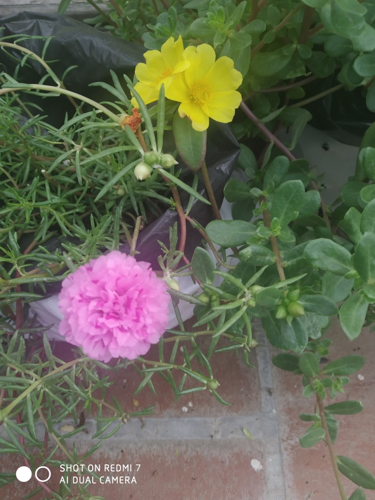 Moss rose / Table rose is a drought tolerant annual plant. Cold sensitive. It is cultivated throughout the world for it’s colorful flowers and foliage. The blooms are orange, pink, purple, yellow, red, white, and multiple colors. Plants grow as succulent foliage. Portulaca has narrow leaves and Purslane has broad leaves.