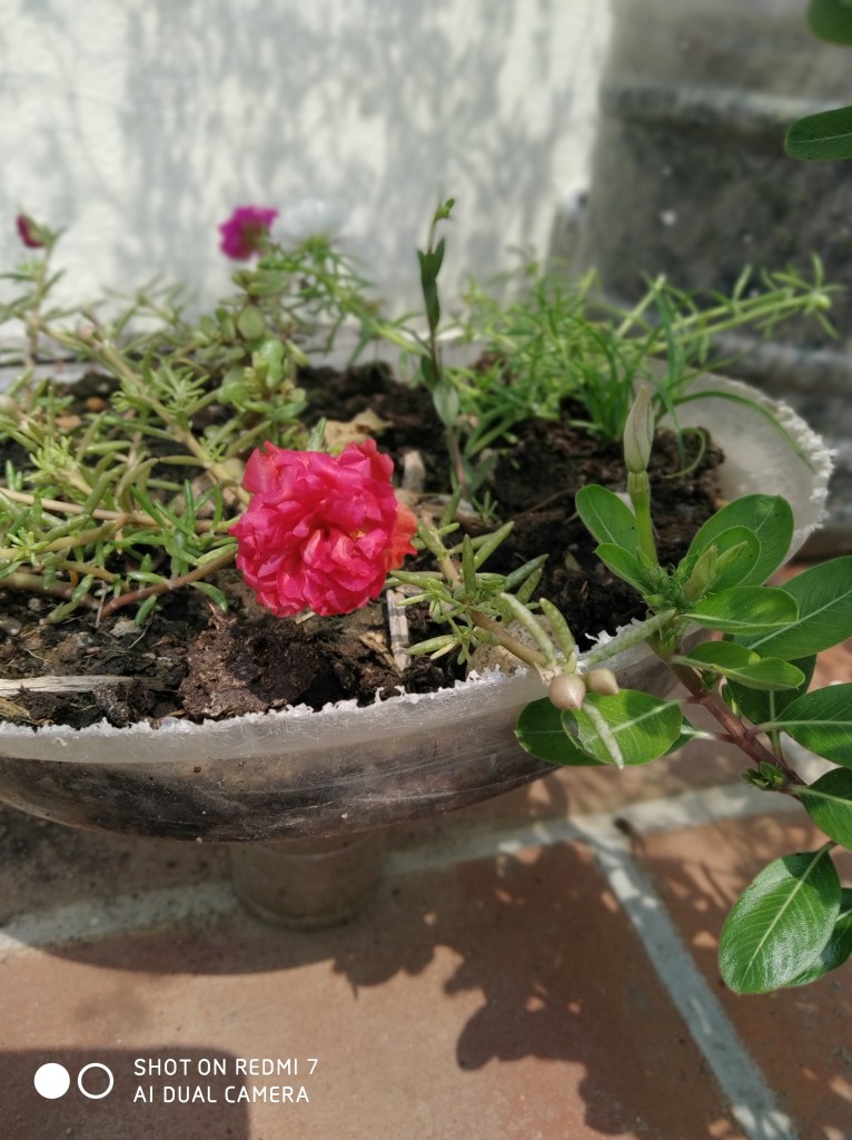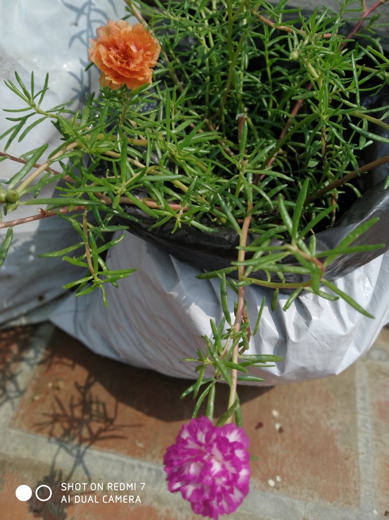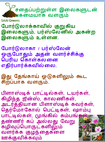 Portulaca / Purslane never expects big container for its growth. It will grow excellently even in Coconut shell also. Encourage your kids to grow moss rose in waste plastic bottles, tires, teared jeans, shoes, thick plastic covers, water canes, thermocol boxes, shampoo bottles, bamboo poles, water cups, or any other waste materials according to your innovation.