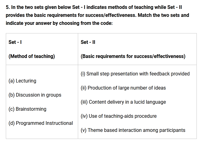 Which of the following set of statements best describes the nature and objectives of teaching? Indicate your answer by selecting from the code.
