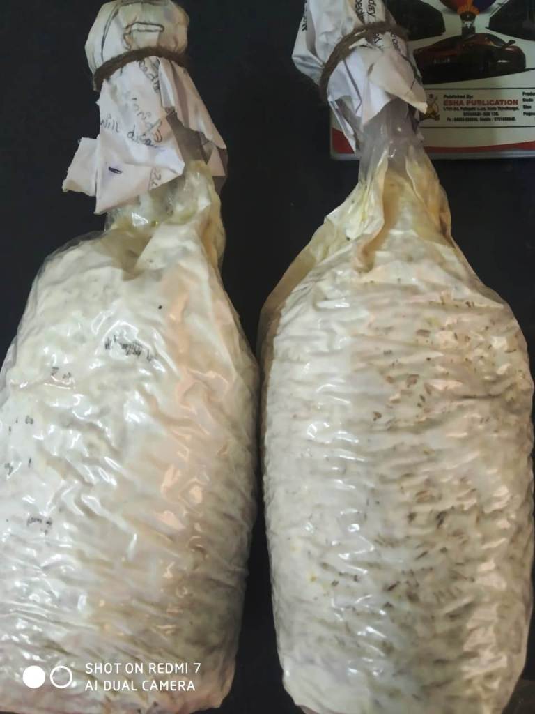 7. Can able to prepare 2 conical size bed by using 250-300g mushroom spawn shown in the above picture.