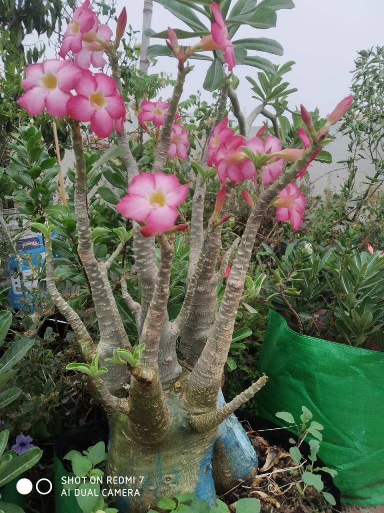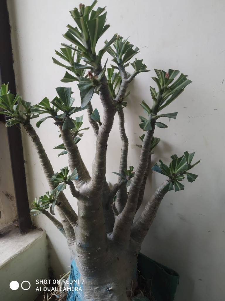 Adenium or desert rose is a flowering plant. Suitable for growing in containers. Plant caudex, leaves and flower in different attractive colors are loved by most of the adenium lovers. Being a desert plants, it likes dryness. Excessive moisture and water stagnation causes rotting.