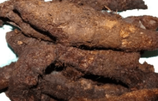 - Grind 10 small onions, 10 cloves of garlic and chopped yam.