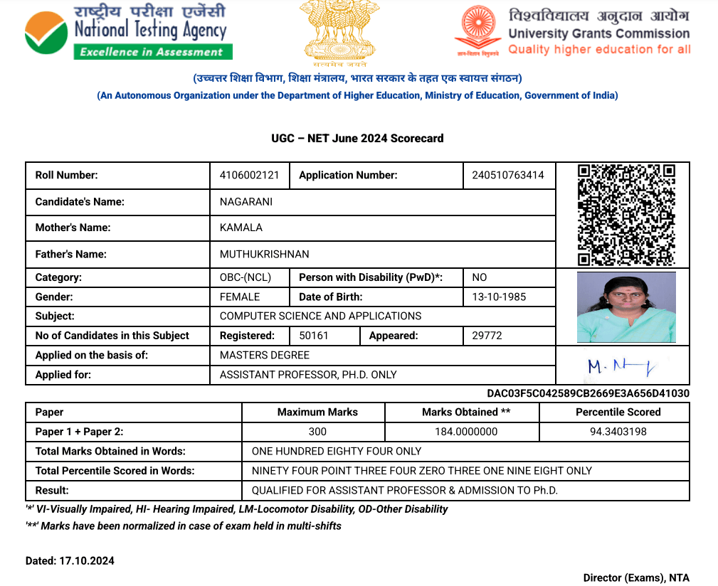 - Click on the “UGC NET June 2024 Scorecard” link.