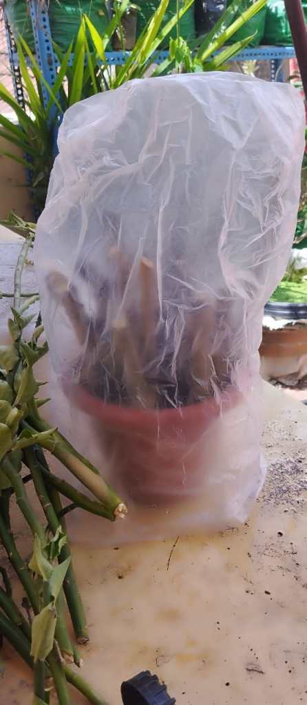 Cover cuttings with a plastic bag or humidity dome to maintain 80-90% humidity.